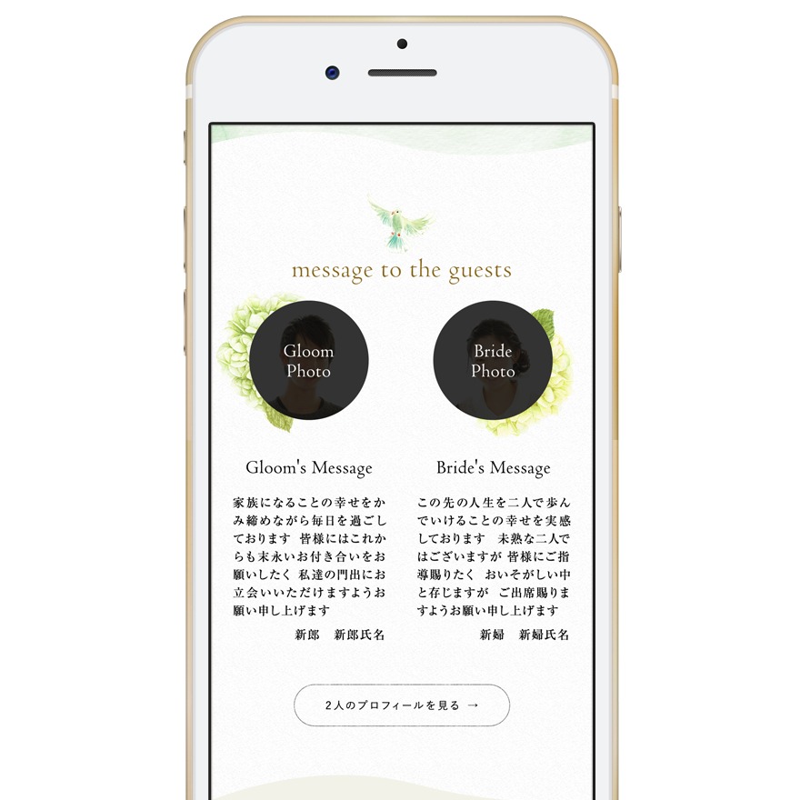 新郎新婦からゲストに向けたメッセージも入れることができます。