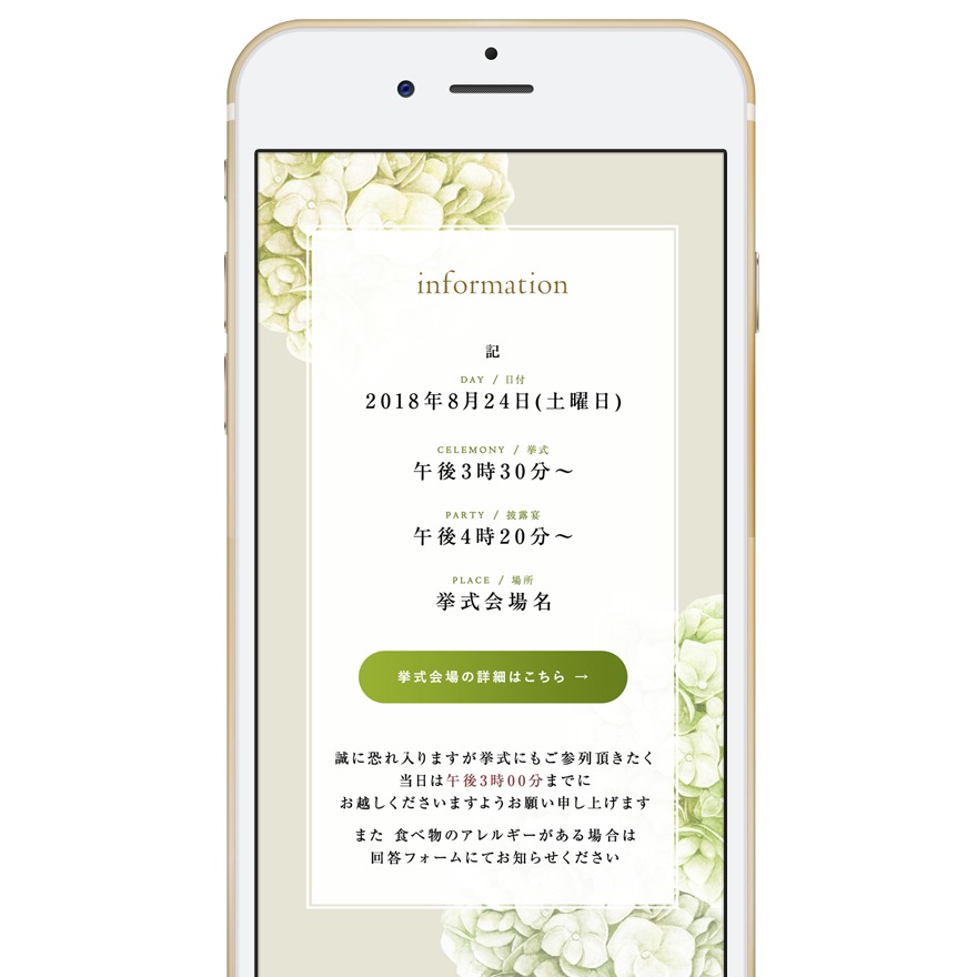 紙の招待状の場合、ゲストに返信用はがきで伺っている内容を、WEB招待状では回答フォームで伺えます。