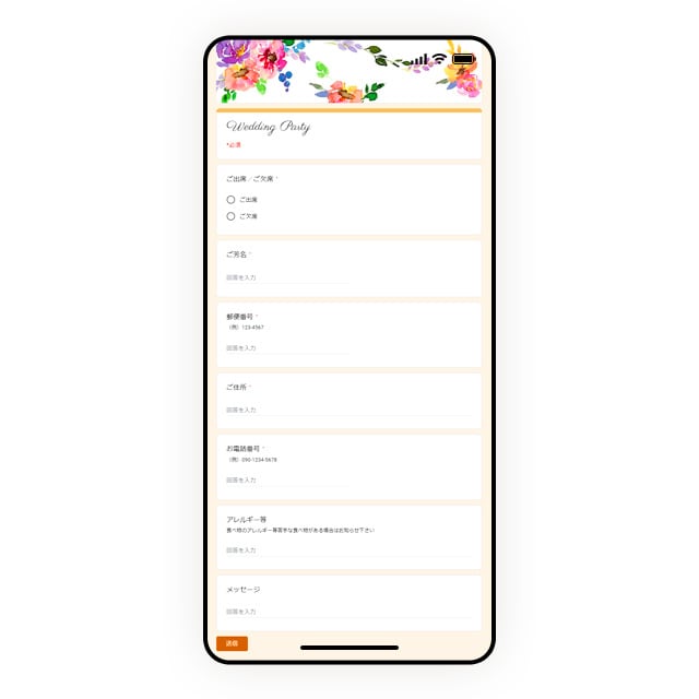 ●フォーム画面(Googleフォーム使用。項目の変更可能。)